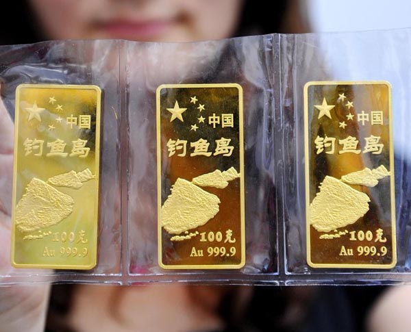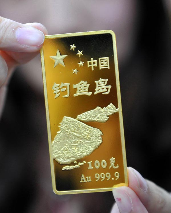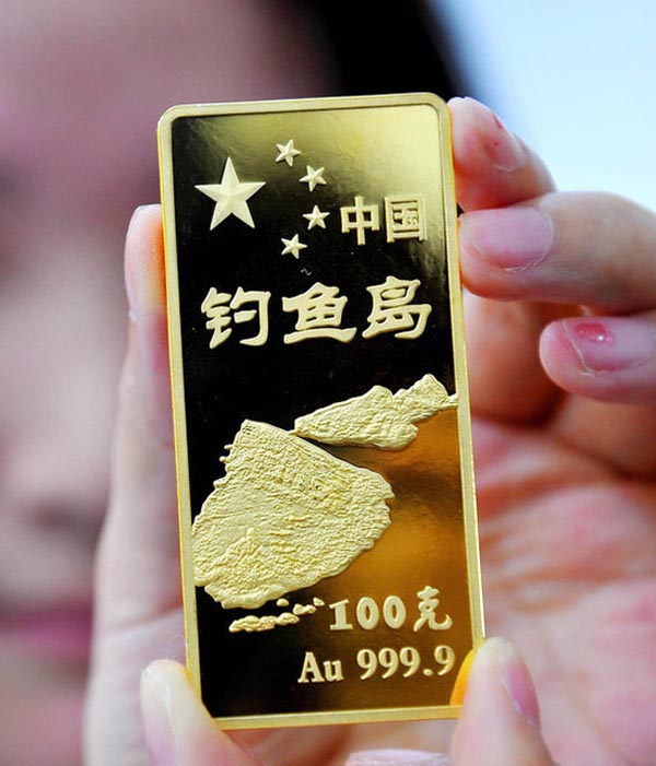 國內首款黃金金條以釣魚島命名的黃金制品、“中國釣魚島金條”入市面世,最重的100克 最輕的只有1克。