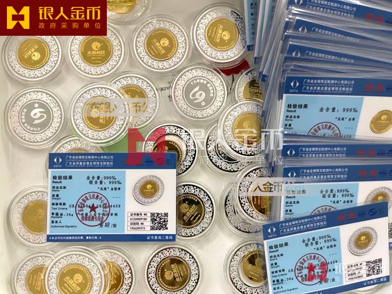 廣東銀人金幣公司提供定制的主要是純金紀念幣和純銀紀念幣,金幣公司品質、足金足銀,黃金白銀、真金白銀、決無造假,這種貴金屬紀念幣也十分適合用在慶典紀念上。