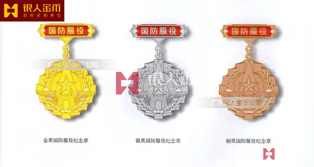 國防服役金質紀念章頒發給服現役滿35年以上的官兵;銀質紀念章頒發給服現役滿20年以上、不滿35年的官兵;銅質紀念章頒發給服現役滿10年以上、不滿20年的官兵。