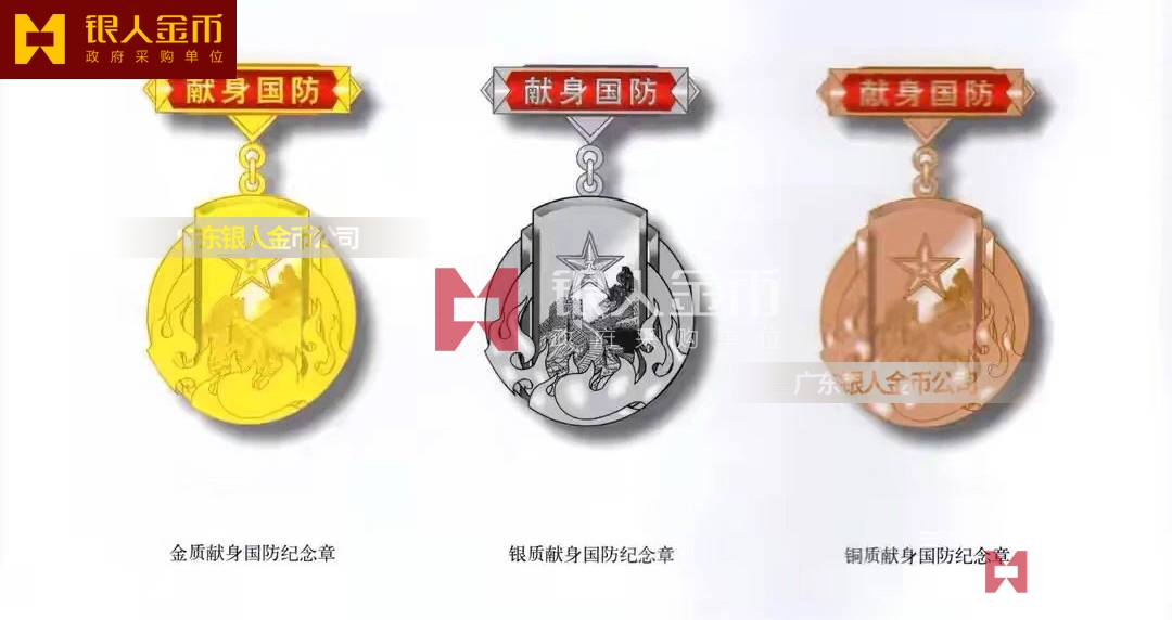 獻身國防紀念章,用于褒獎為國防和軍隊建設光榮犧牲或致殘的官兵,分金、銀、銅質三種;