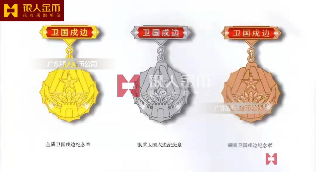 衛國戍邊紀念章用于褒獎在邊遠艱苦地區服現役的官兵,分金、銀、銅質三種。