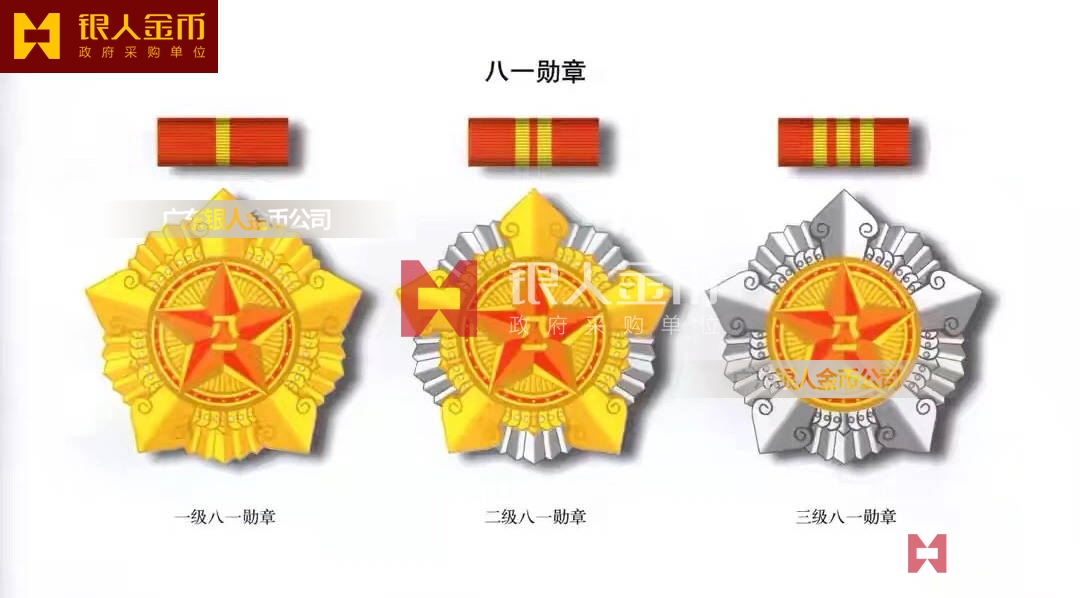 三級八一勛章僅中間主體圖案為金色,其余為銀色。