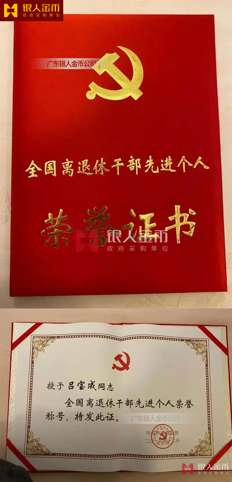 中共中央組織部全國離退休干部先進集體獎牌證書、中共中央組織部全國離退休干部先進獎牌證書個人榮譽稱號榮譽獎章獎勵證章獎勵證書(圖)