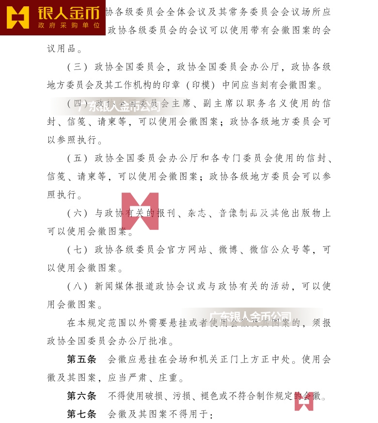 (六)與政協有關的報刊、雜志、音像制品及其他出版物上可以使用會徽圖案。