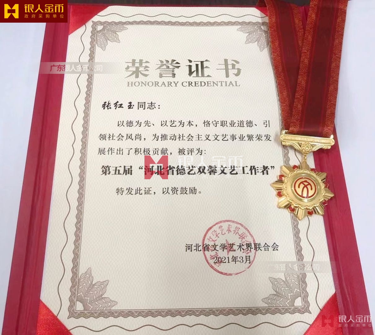 中共中央宣傳部全國中青年德藝雙馨文藝工作者獎章證書證章(圖)