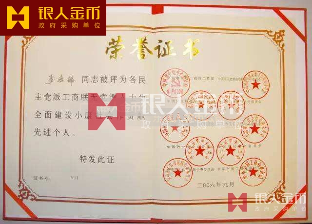 4、國家級功勛章、獎章、紀念章、榮譽稱號、獎牌、證章、證書須報請中辦、國辦、中組部同意后行文發函,指定內部特殊供應,不收費;