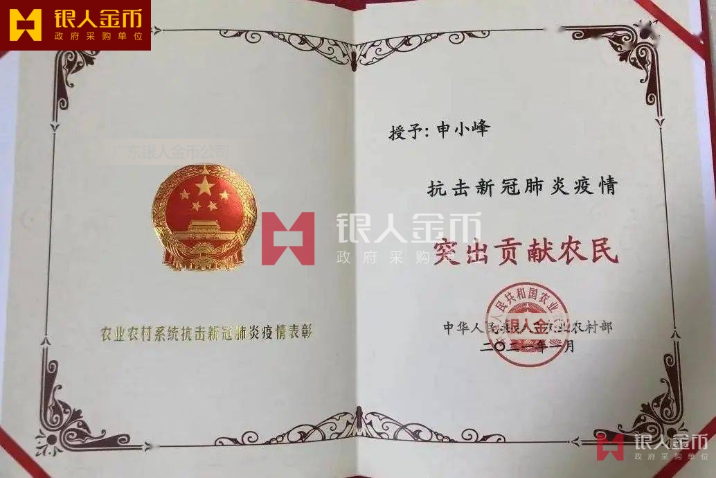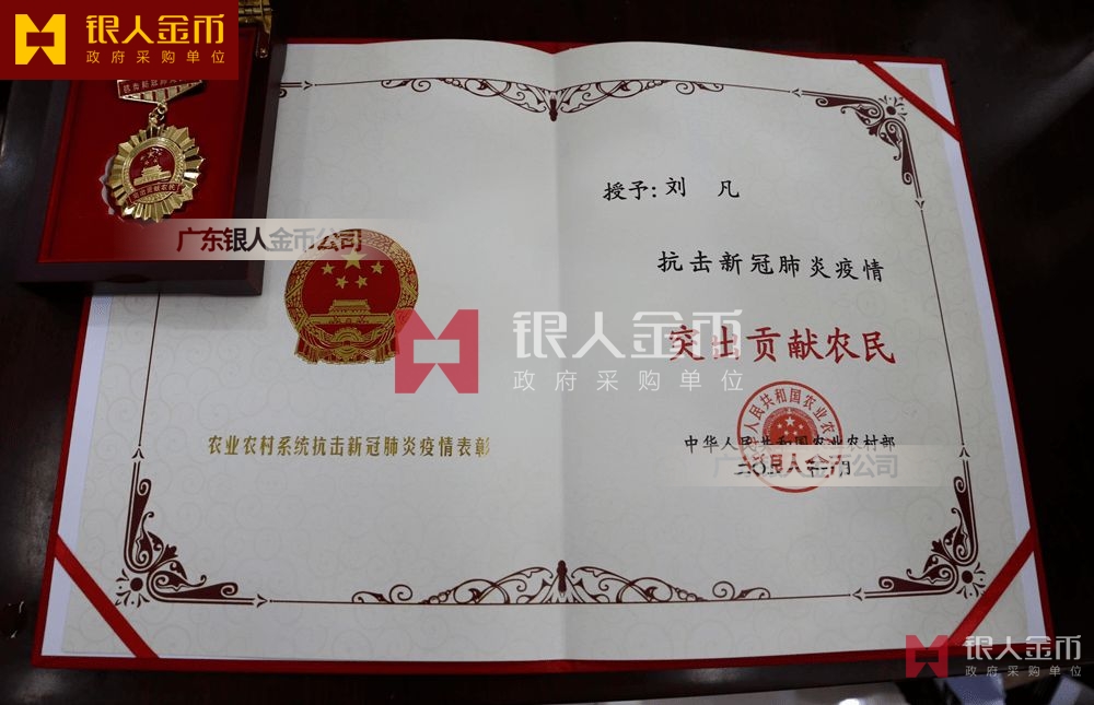 農村農業部抗擊新冠肺炎疫情先進個人突出貢獻農民稱號獎牌獎章證書(圖)