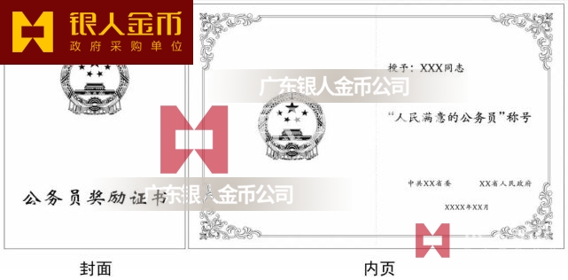公務員、公務員集體的獎勵證書、獎章和獎牌,按照規定的式樣、規格、質地,由省級以上公務員主管部門統一制作或者監制。