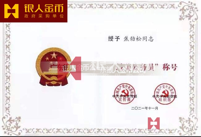 最新!中共中央組織部人民滿意的公務員稱號獎牌獎章獎勵證書/榮譽證書