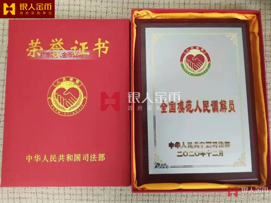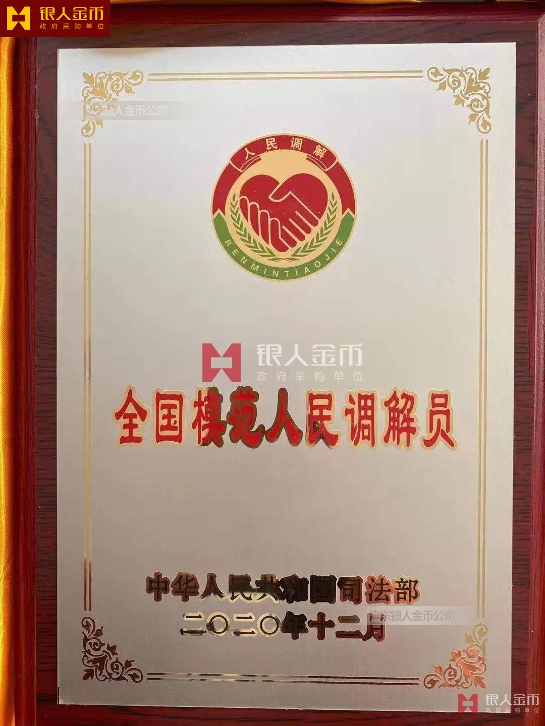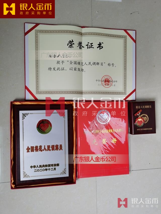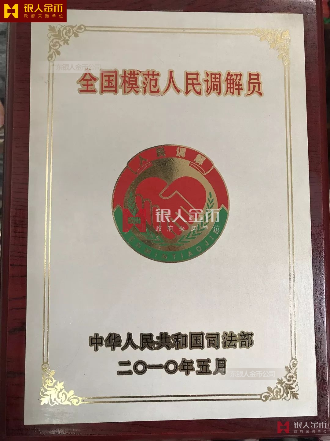 中華人民共和國司法部全國模范人民調解員獎章勛章獎牌證章胸章徽章榮譽證書(圖)