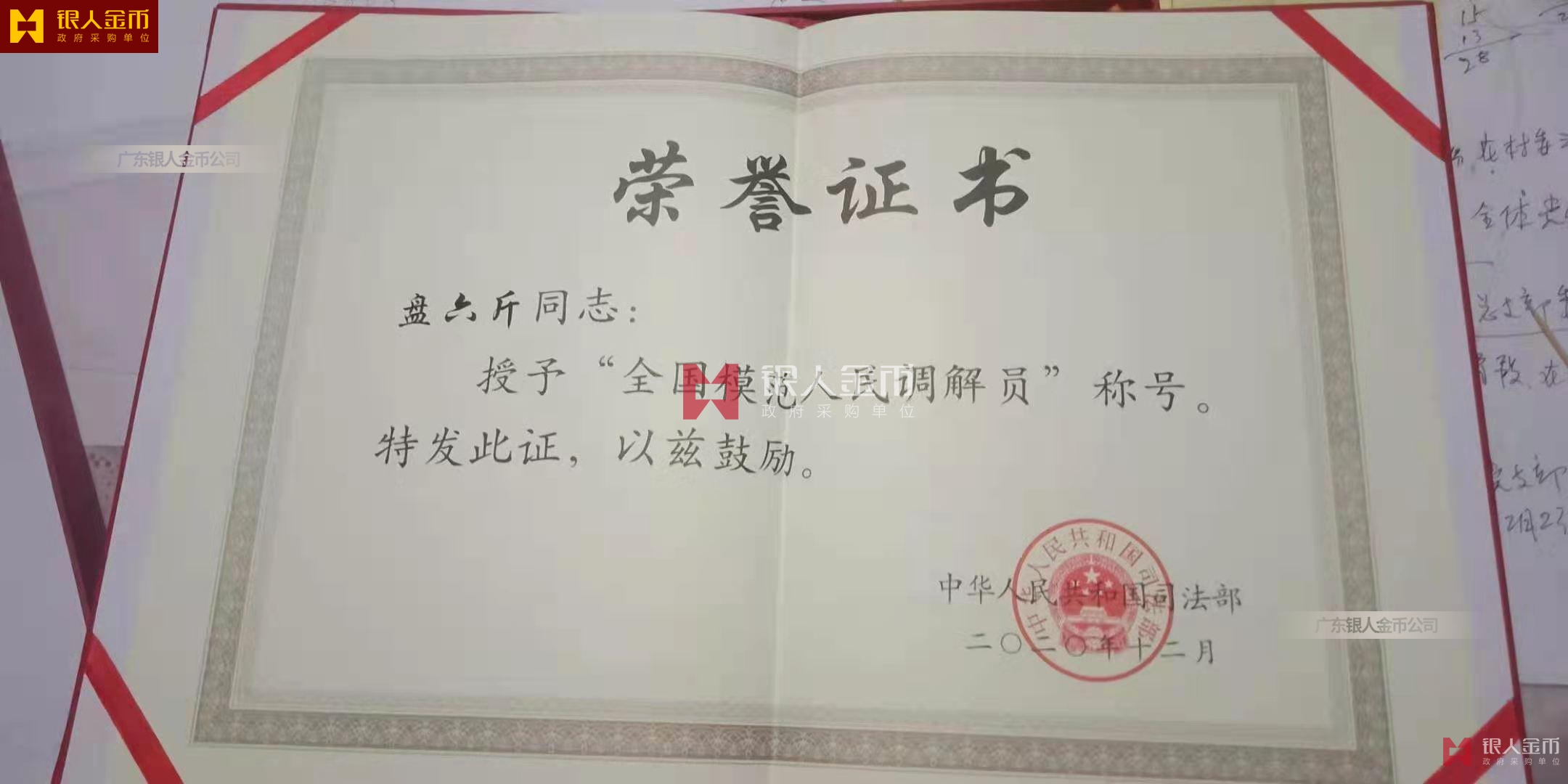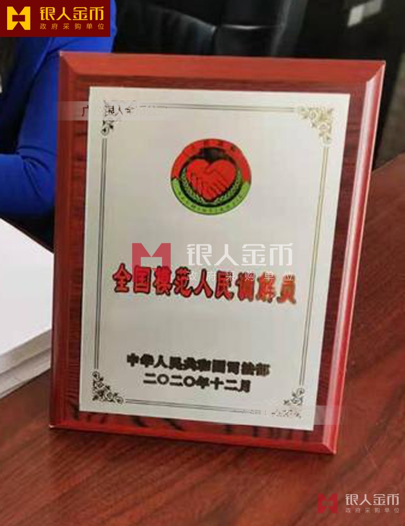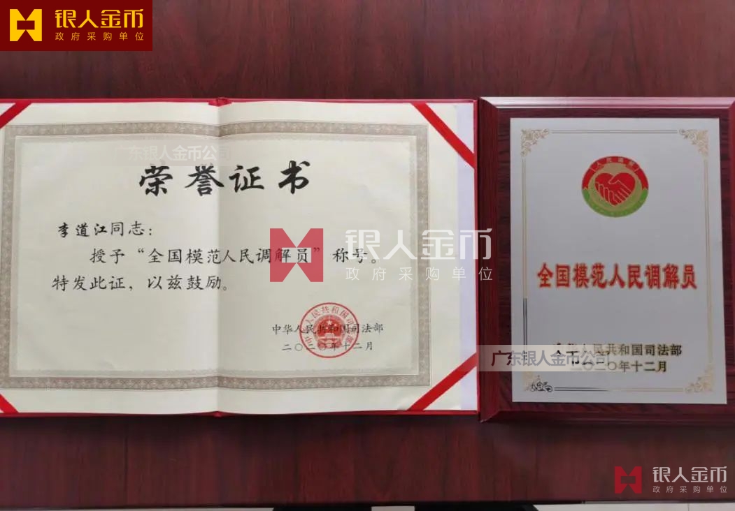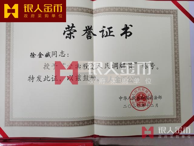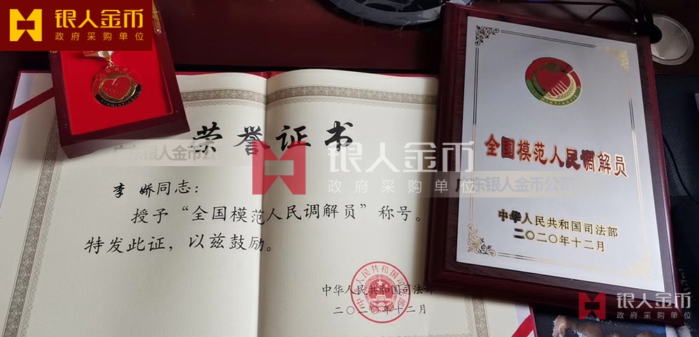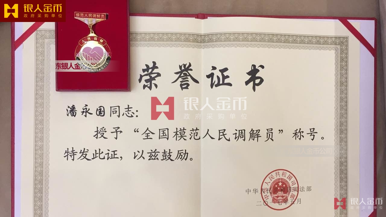 中華人民共和國司法部全國模范人民調解員獎章勛章獎牌證章胸章徽章榮譽證書(圖)