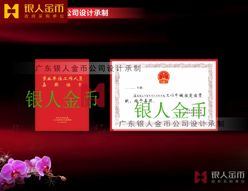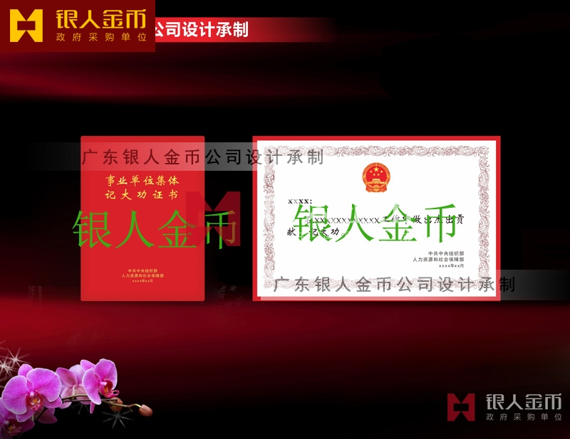 中共中央組織部、人力資源和社會保障部 事業單位獎勵證書、獎章、獎牌式樣 一、事業單位工作人員、事業單位工作人員集體獎勵證書 1. 事業單位工作人員嘉獎證書