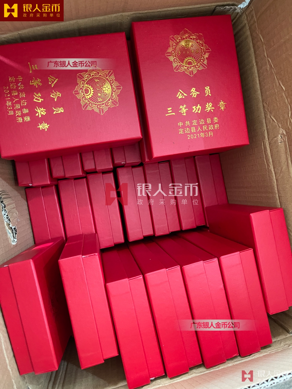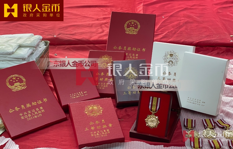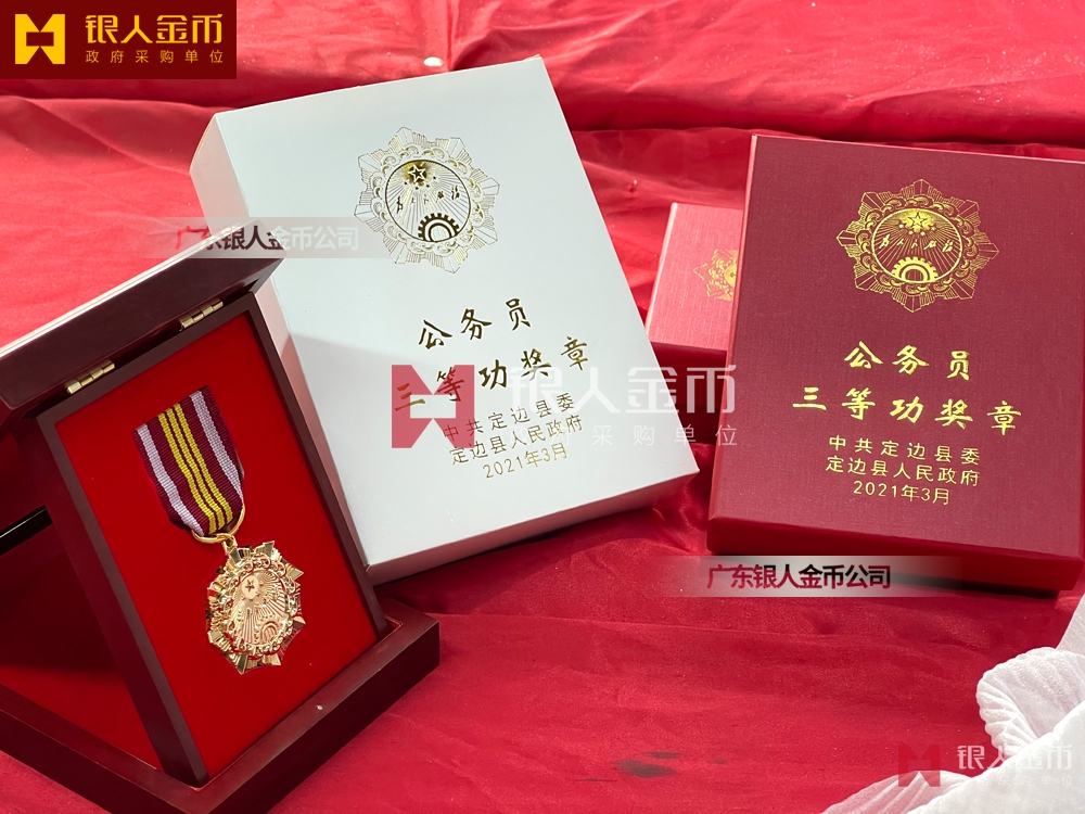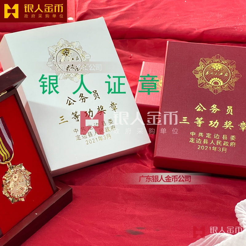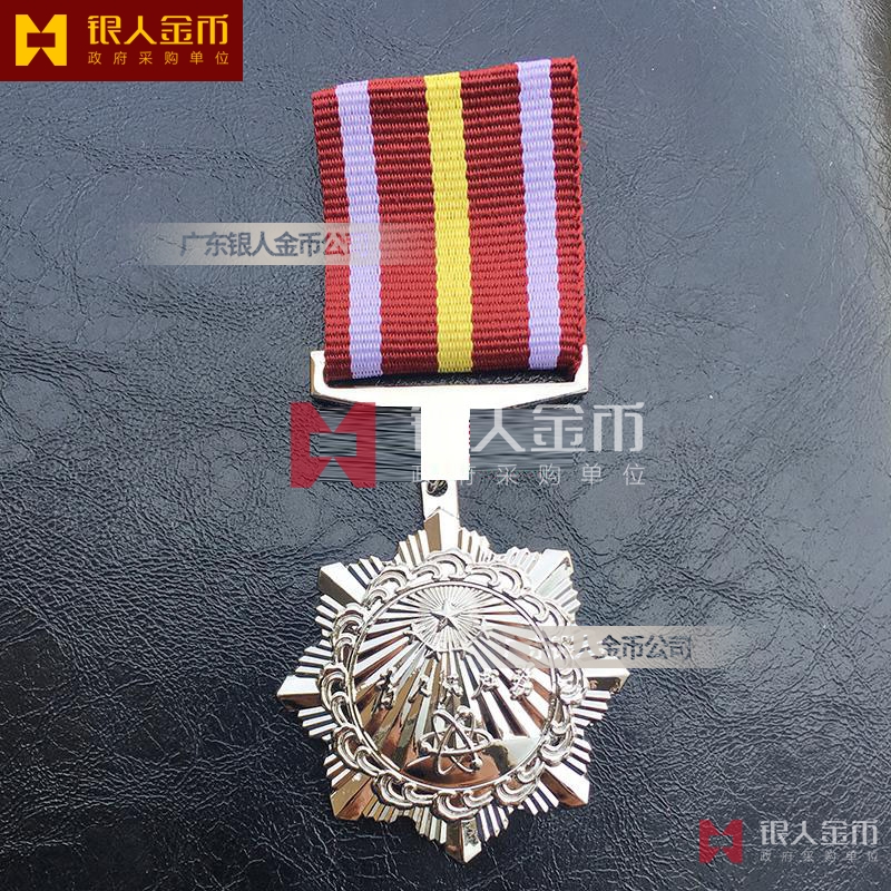 證書規格為245× 二、事業單位工作人員獎章 1. 事業單位工作人員記功獎章 該套獎章分為銅質獎章和綬帶兩部分,整體規格為100× 該套獎章分為銅質獎章和綬帶兩部分,整體規格為100× 獎章由黃銅壓制成型,采用鍍銀工藝,全部為銀色。獎章中心部位由上中下三部分組成。其中,上部為五星圖案, 中間部分是由毛澤東同志親筆題寫的“為人民服務”字樣,獎章中心的下半部分圖案為原子,獎章核心部分周圍為波浪型水紋。 2. 事業單位工作人員記大功獎章 該套獎章分為銅質獎章和綬帶兩部分,整體規格為100× 獎章由黃銅壓制成型,采用鍍金工藝,全部為金色。獎章中心部位由上中下三部分組成。其中,上部為五星圖案,中間部分是由毛澤東同志親筆題寫的“為人民服務”字樣,獎章中心的下半部分圖案為翻開的書頁,獎章核心部分周圍為波浪型水紋。 三、事業單位工作人員集體獎牌