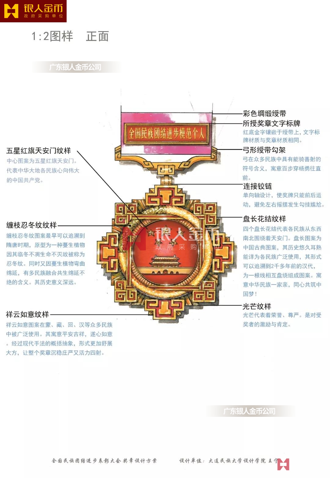 全國民族團結進步模范個人獎章(作品設計圖案著作權歸原設計作者:遼寧大連民族大學設計學院 王寧 所有)