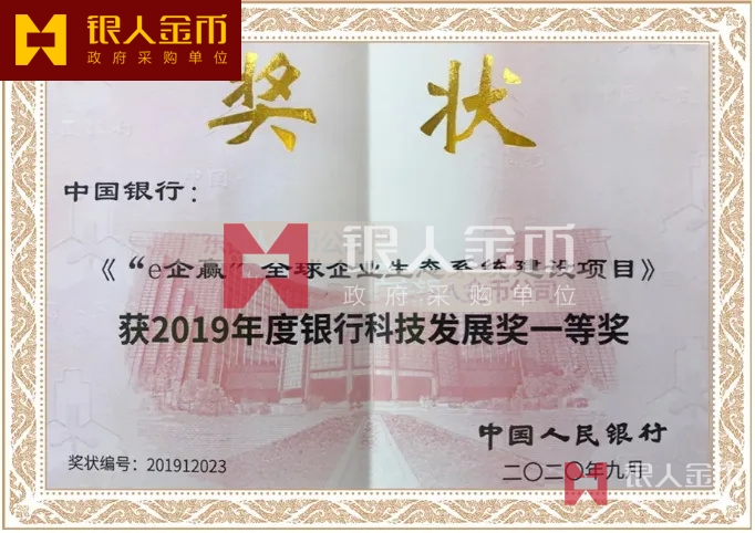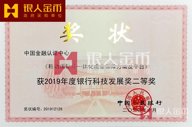 中國人民銀行年度“銀行科技發展獎”榮譽證書獎勵證書獎狀及獎牌獎章證章徽章紀念章(圖)