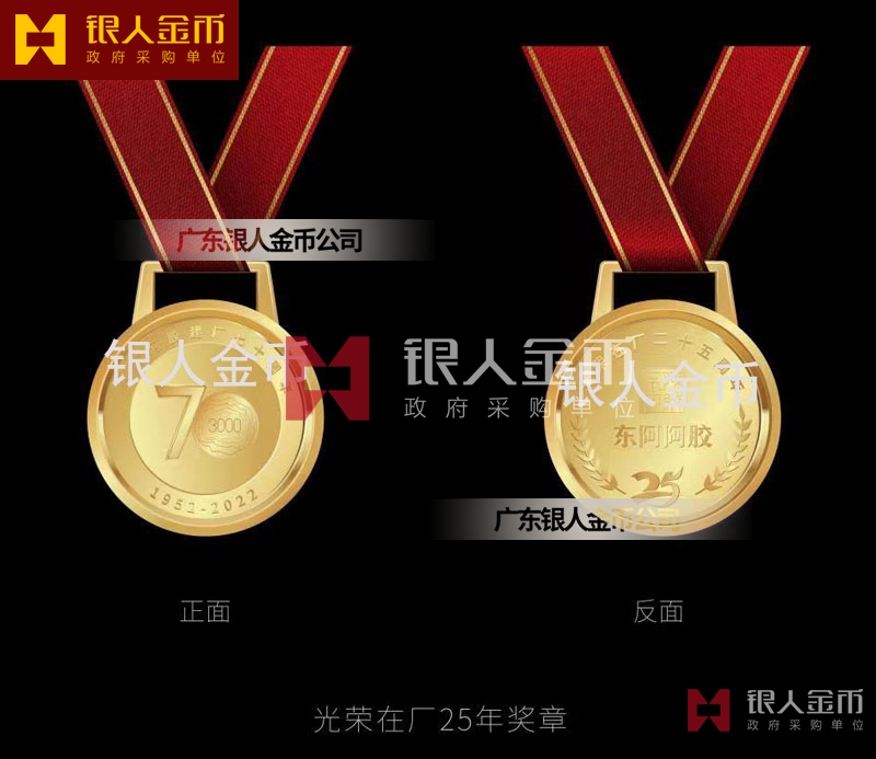 東阿阿膠集團建廠成立70周年光榮在廠25年紀念章、光榮在廠25年紀念獎章、光榮在廠25年紀念勛章、光榮在廠25年紀念獎牌