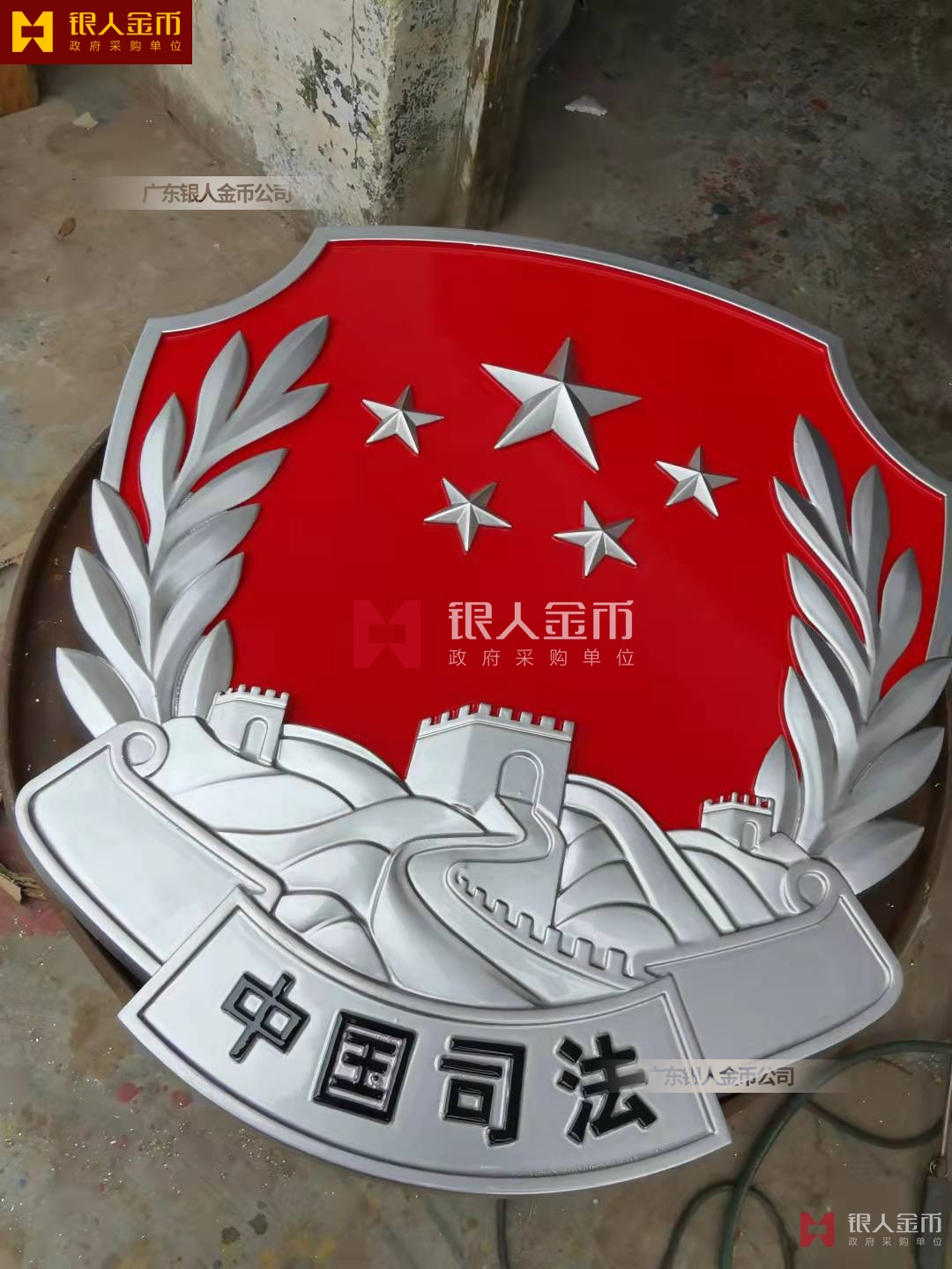 大型戶外大樓室內禮堂懸掛人大政協會徽軍警稅務司法工會交通安監質監檢疫法院檢察院徽標生產定制制造【廣州銀人徽章廠制作公司】