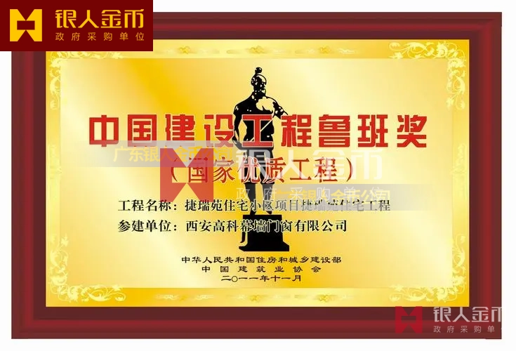 中國建設工程魯班獎獎杯證書獎牌制作-國家級建筑工程類七大獎項(1)(圖)-【廣州銀人獎牌證章廠有限公司】