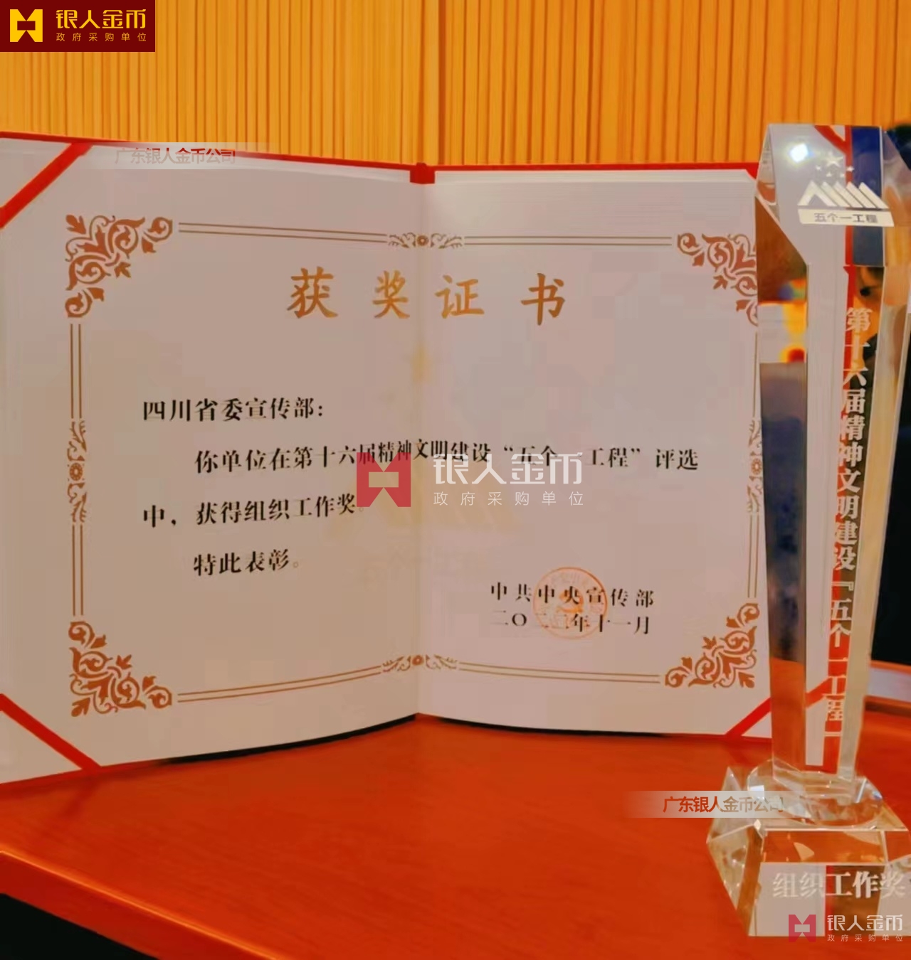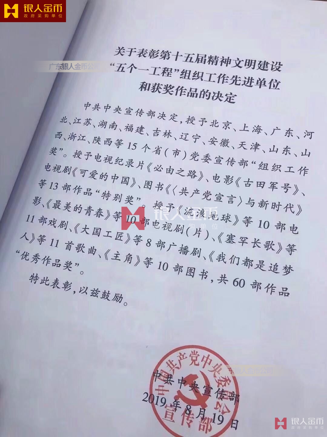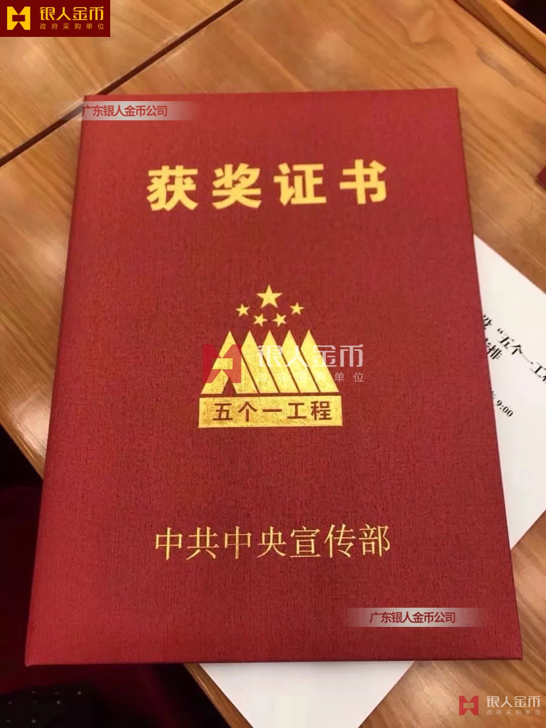 中共中央宣傳部“五個一工程”獎獎牌獎杯和證書(圖)【廣州銀人獎牌獎章廠有限公司】
