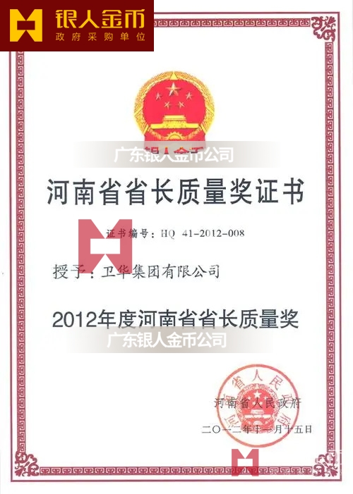 河南省政府河南省省長質量獎獎章獎牌獎杯及證書(圖)【廣州銀人獎章證章廠有限公司】
