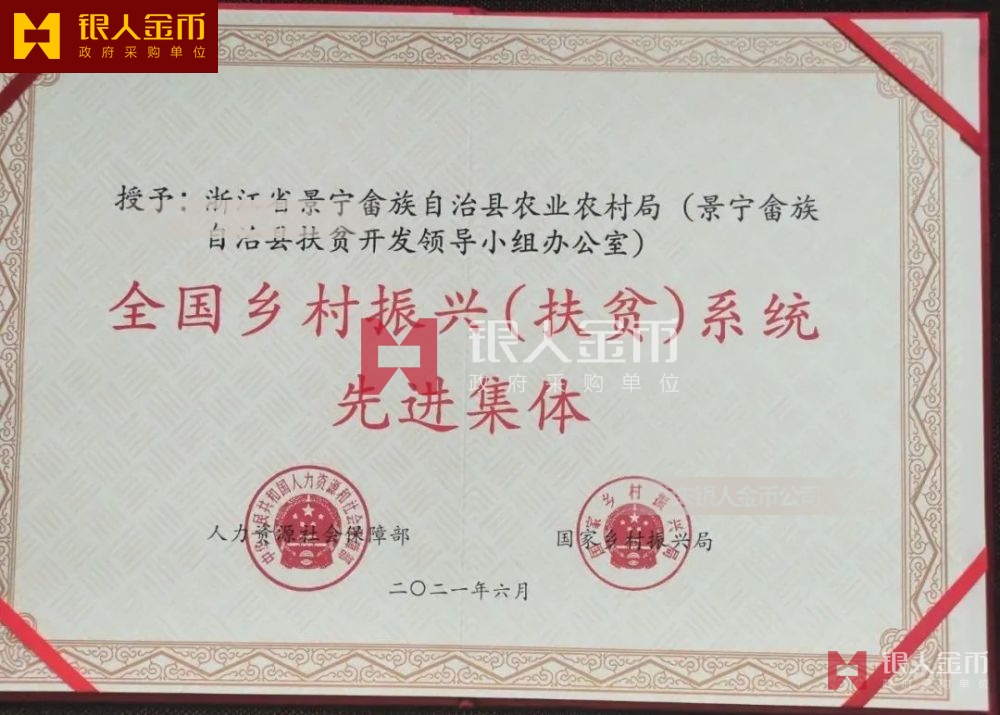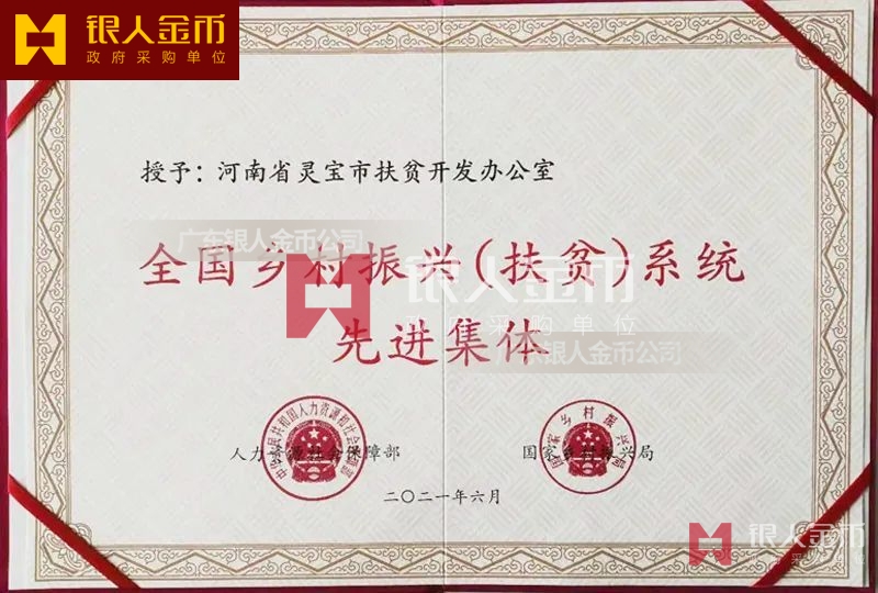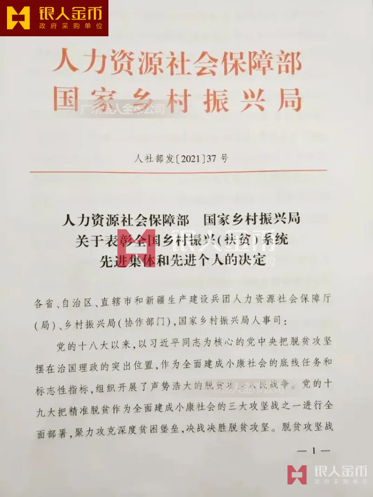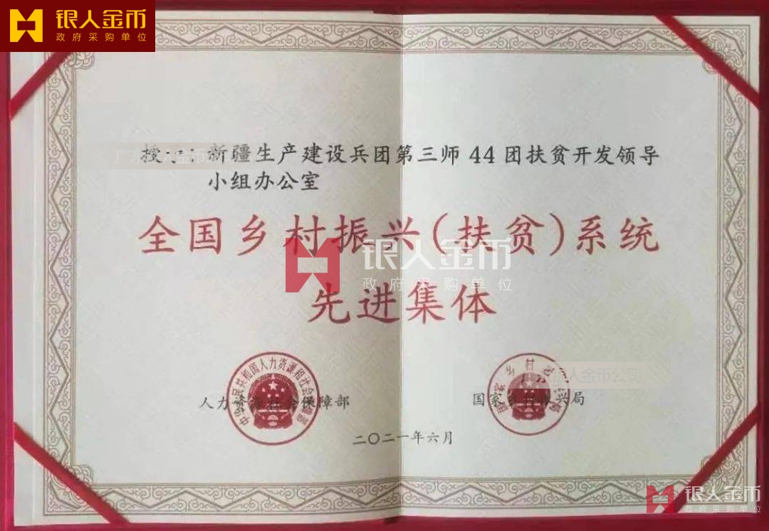 人力資源社會保障部 國家鄉村振興全國鄉村振興(扶貧)先進集體和先進個人獎章獎牌證書(圖)