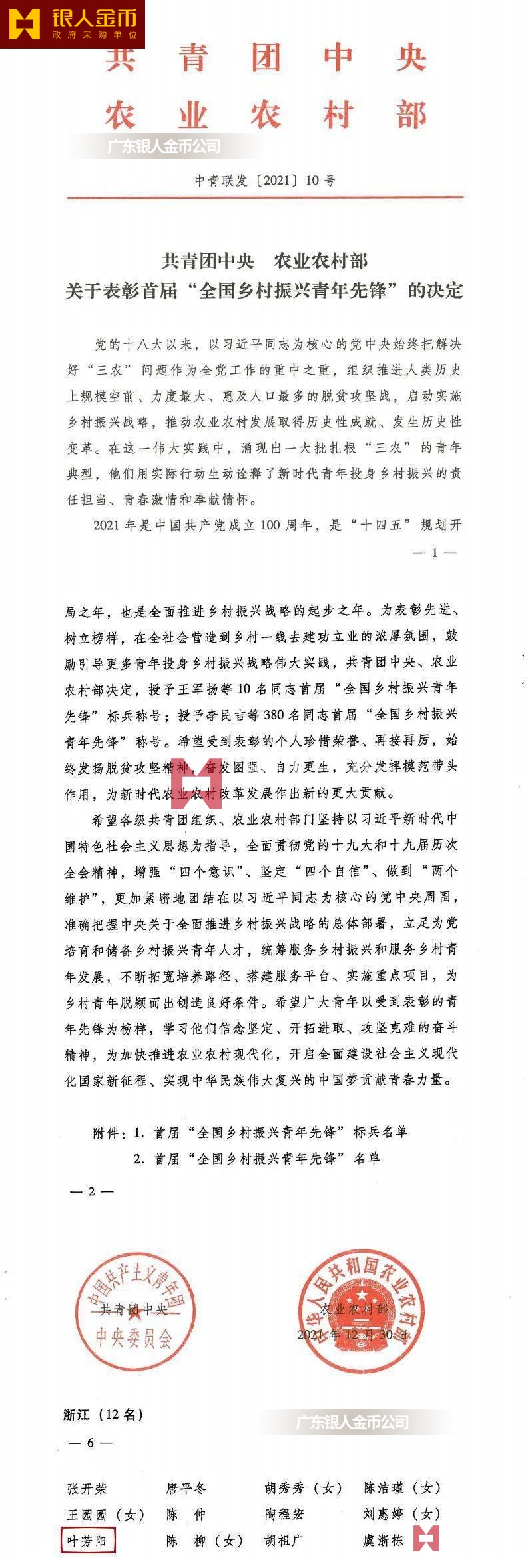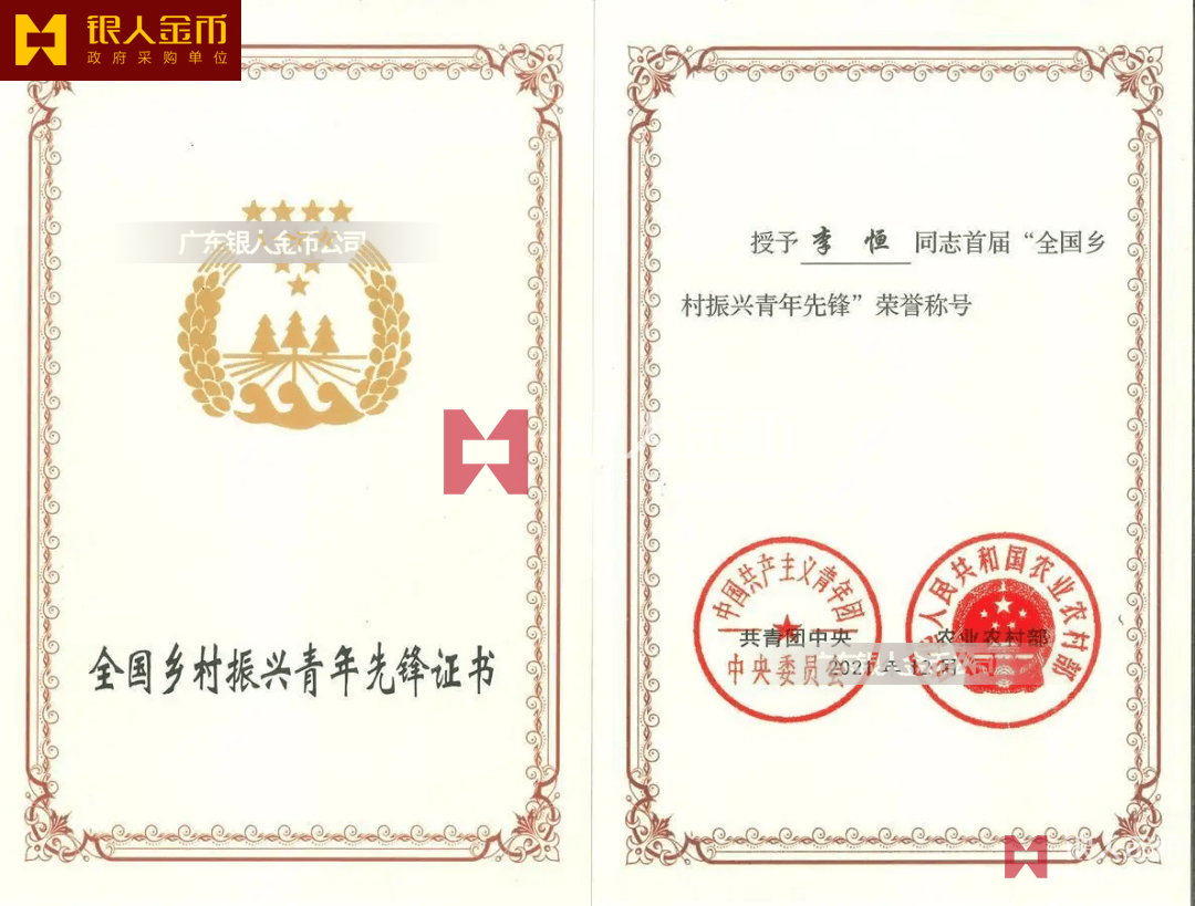 共青團中央 農業農村部全國鄉村振興青年先鋒獎章勛章獎牌紀念章證書(圖)【廣州銀人獎牌獎章紀念章廠家有限公司】