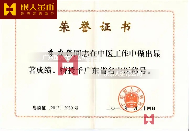 首都名醫、廣東省名中醫、獎章勛章獎牌證章和證書