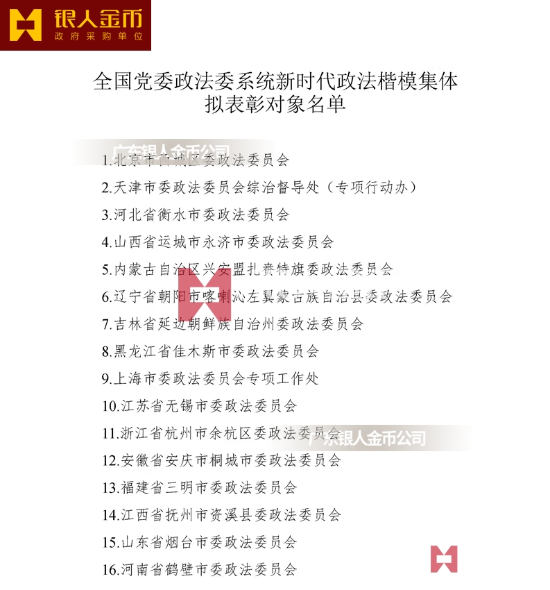 根據《中央政法委?人力資源社會保障部關于做好“新時代政法楷模”推薦評選工作的通知》要求,經自下而上、逐級審核推薦,并經新時代政法楷模評選表彰工作領導小組復審,擬表彰全國黨委政法委系統新時代政法楷模集體33個(名單見附件1)、新時代政法楷模個人10名(名單見附件2)。按照此次表彰的程序和要求,為體現公開、公平、公正原則,現將全國黨委政法委系統新時代政法楷模集體、新時代政法楷模個人擬表彰對象予以公示。公示期為5個工作日(2023年4月17日至2023年4月21日)。