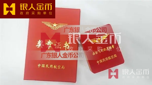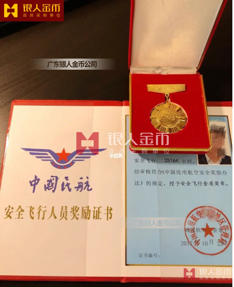 中國民用航空局/華北/中南/西南/新疆/東北/華東/西北地區管理局安全飛行金質銀質銅質獎章中國民航安全飛行人員獎勵證書(圖)