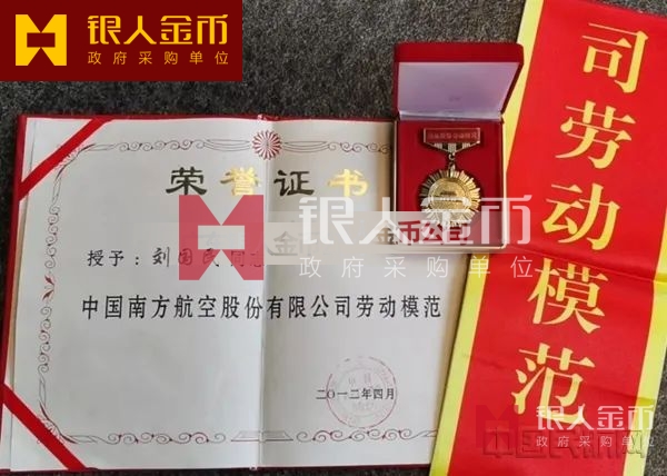 中國民航局直屬機關工會五一勞動獎章、工人先鋒號、南方航空公司五一勞模獎章證書(圖)