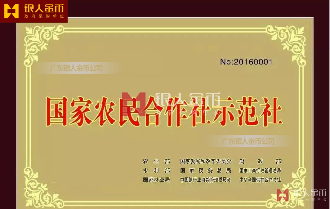 國家發改委、供銷合作總社國家農民合作社示范社獎牌牌匾銅牌匾額(圖)