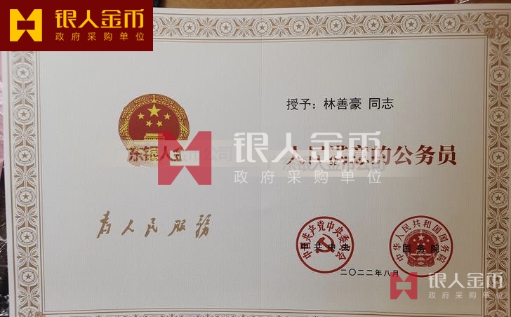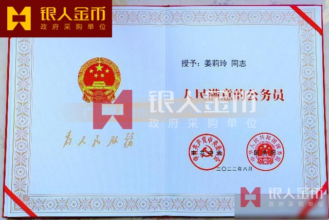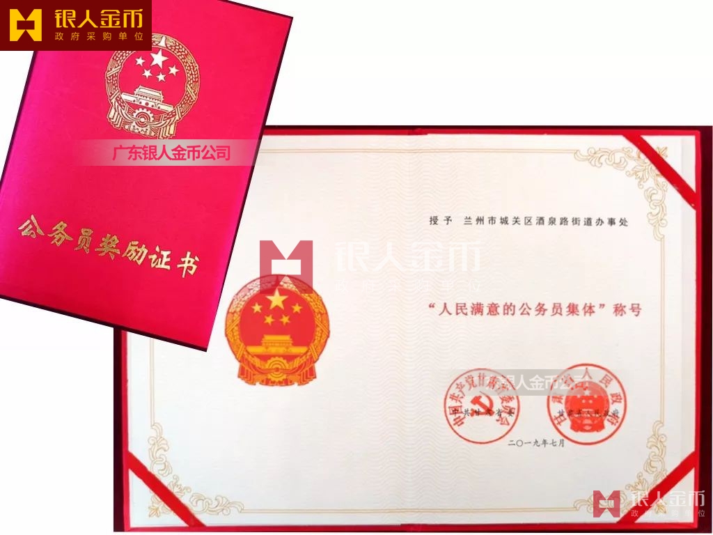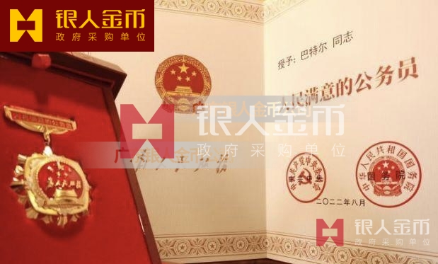 中共中央、國務院為人民服務字樣新款人民滿意的公務員稱號獎牌獎章證書(圖)--【廣州銀人勛章獎章紀念章獎牌徽章廠有限公司】