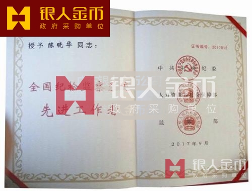 中共中央紀委、國家監委、監察部、人力資源和社會保障部全國紀檢監察系統先進工作者個人勛章紀念章獎章榮譽稱號獎牌獎章證書(圖)--【廣州銀人勛章獎章紀念章獎牌徽章廠有限公司】