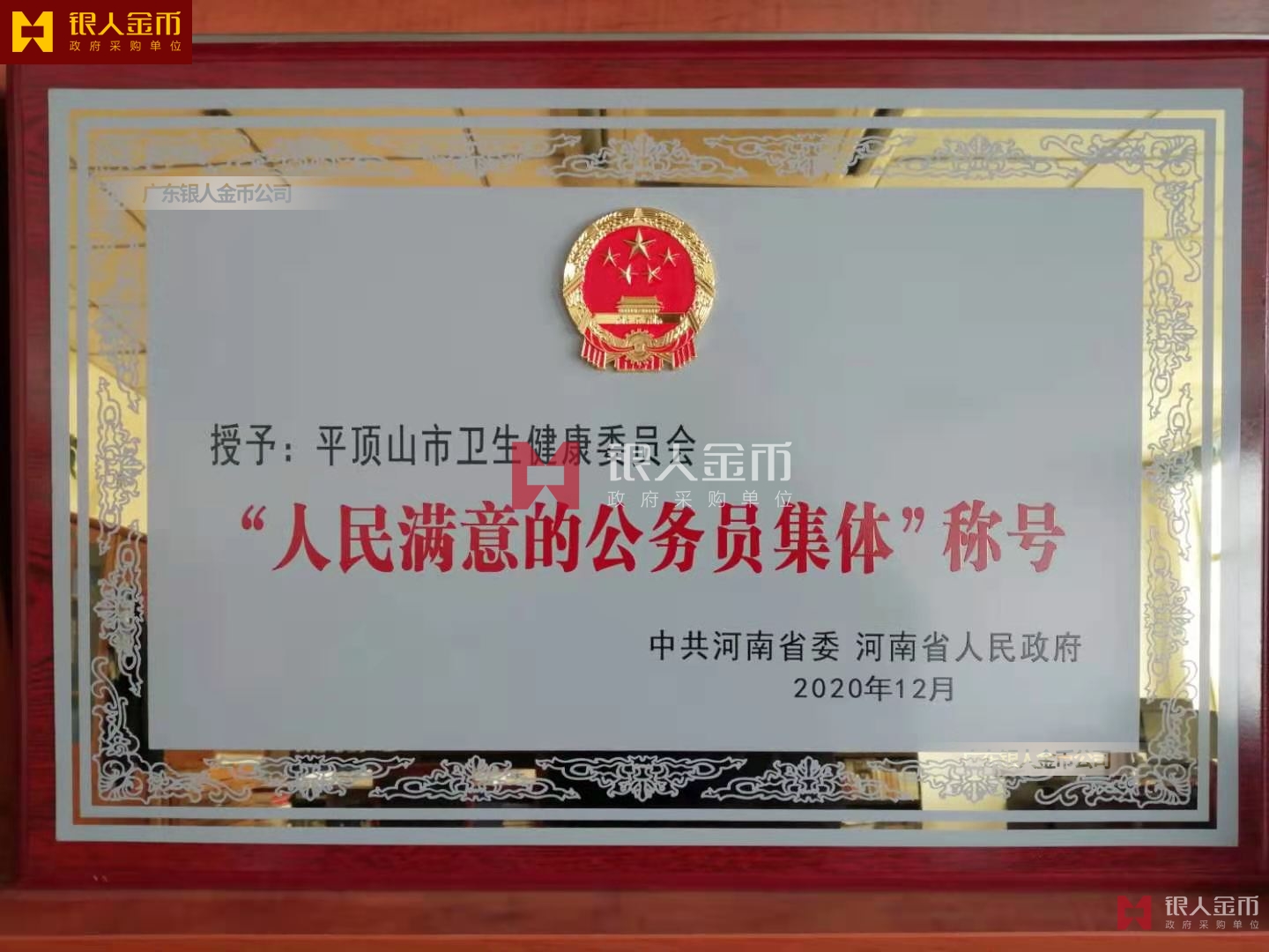 中共河南省委、河南省人民政府、中共河南省委組織部全省人民滿意的公務員集體稱號獎牌獎章證書(圖)--【廣州銀人勛章獎章紀念章獎牌徽章廠有限公司】