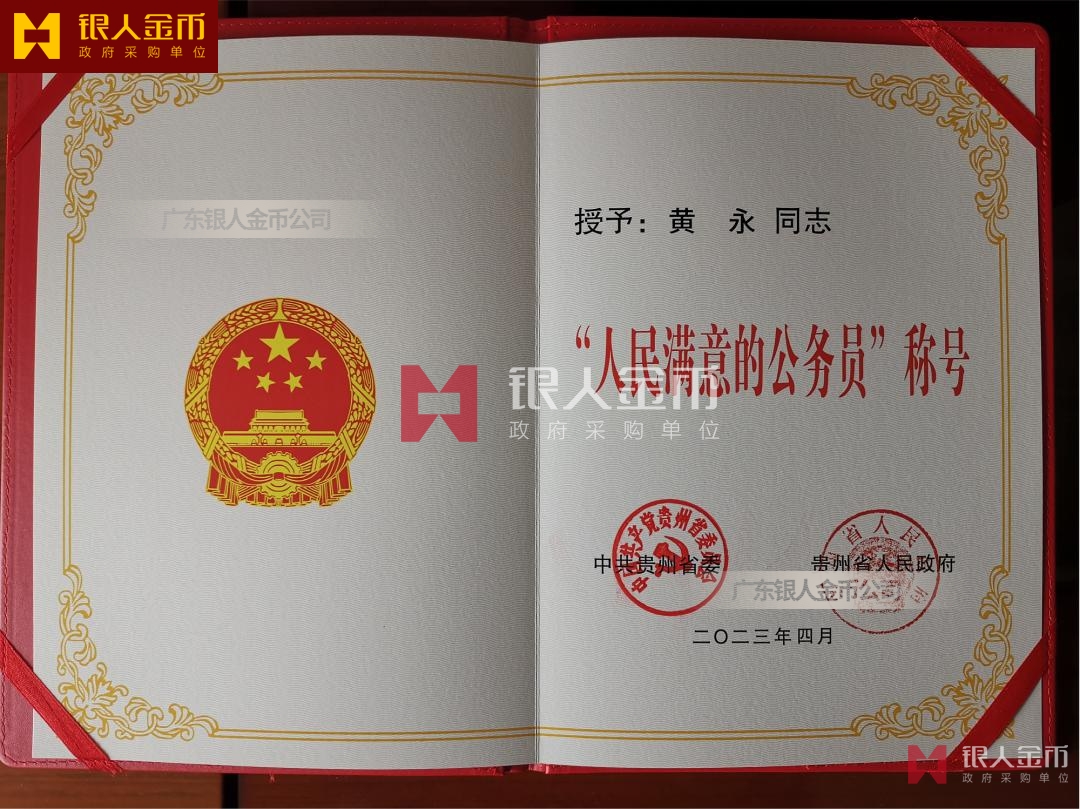 中共貴州省委、貴州省人民政府、中共貴州省委組織部全省人民滿意的公務員集體稱號獎牌獎章證書(圖)--【廣州銀人勛章獎章紀念章獎牌徽章廠有限公司】