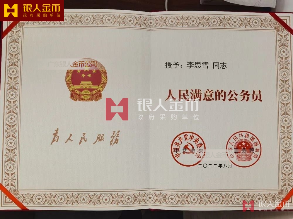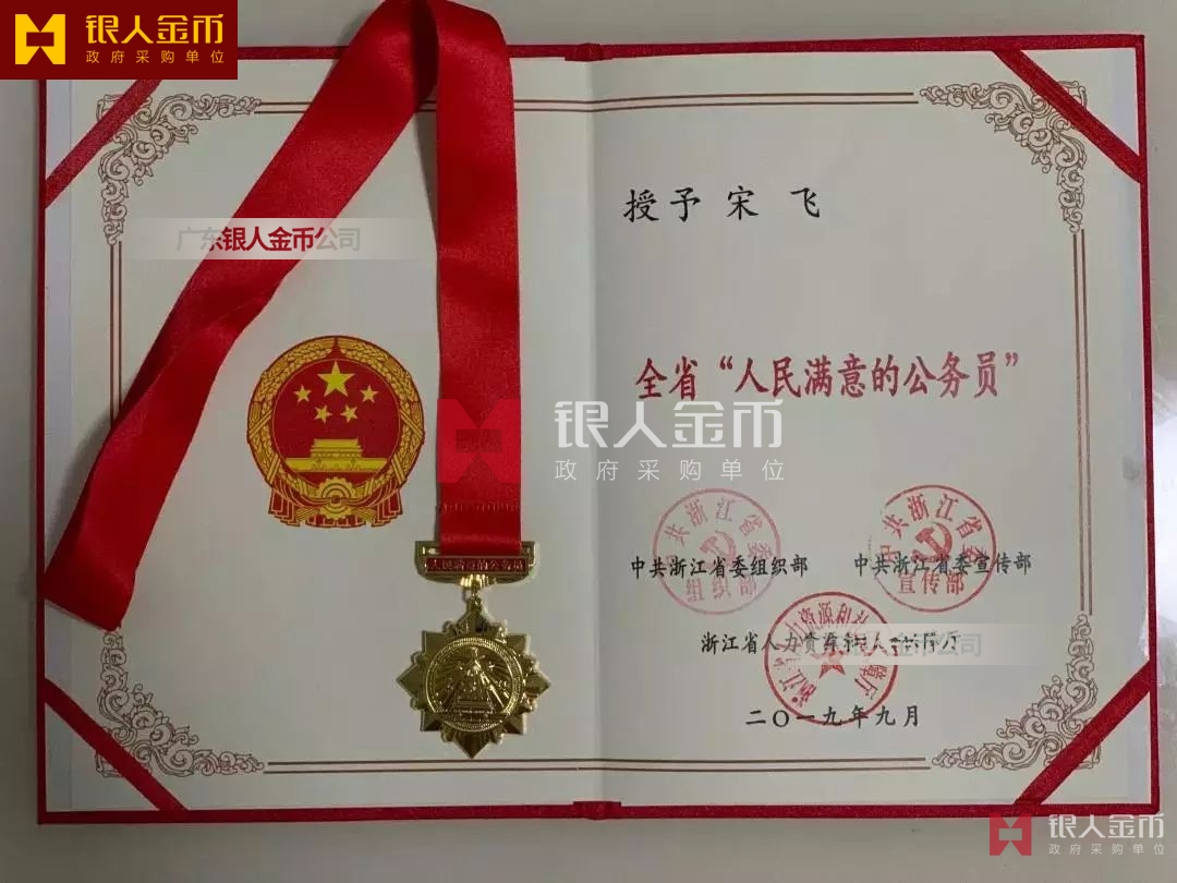中共中央、國務院、中共中央組織部、中共中央宣傳部全國人民滿意的公務員榮譽稱號獎牌獎章證書(圖)--【廣州銀人勛章獎章紀念章獎牌徽章廠有限公司】