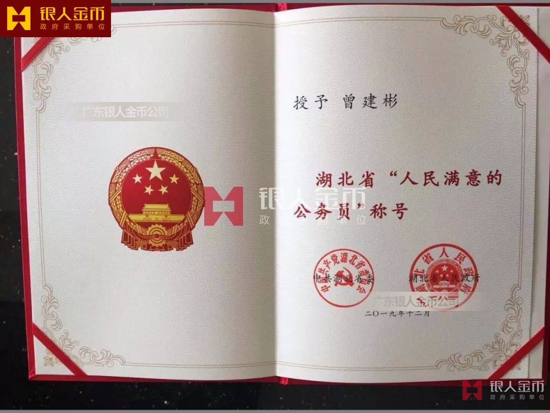中共湖北省委、湖北省人民政府、中共湖北省委組織部全省人民滿意的公務員集體稱號獎牌獎章證書(圖)--【廣州銀人勛章獎章紀念章獎牌徽章廠有限公司】