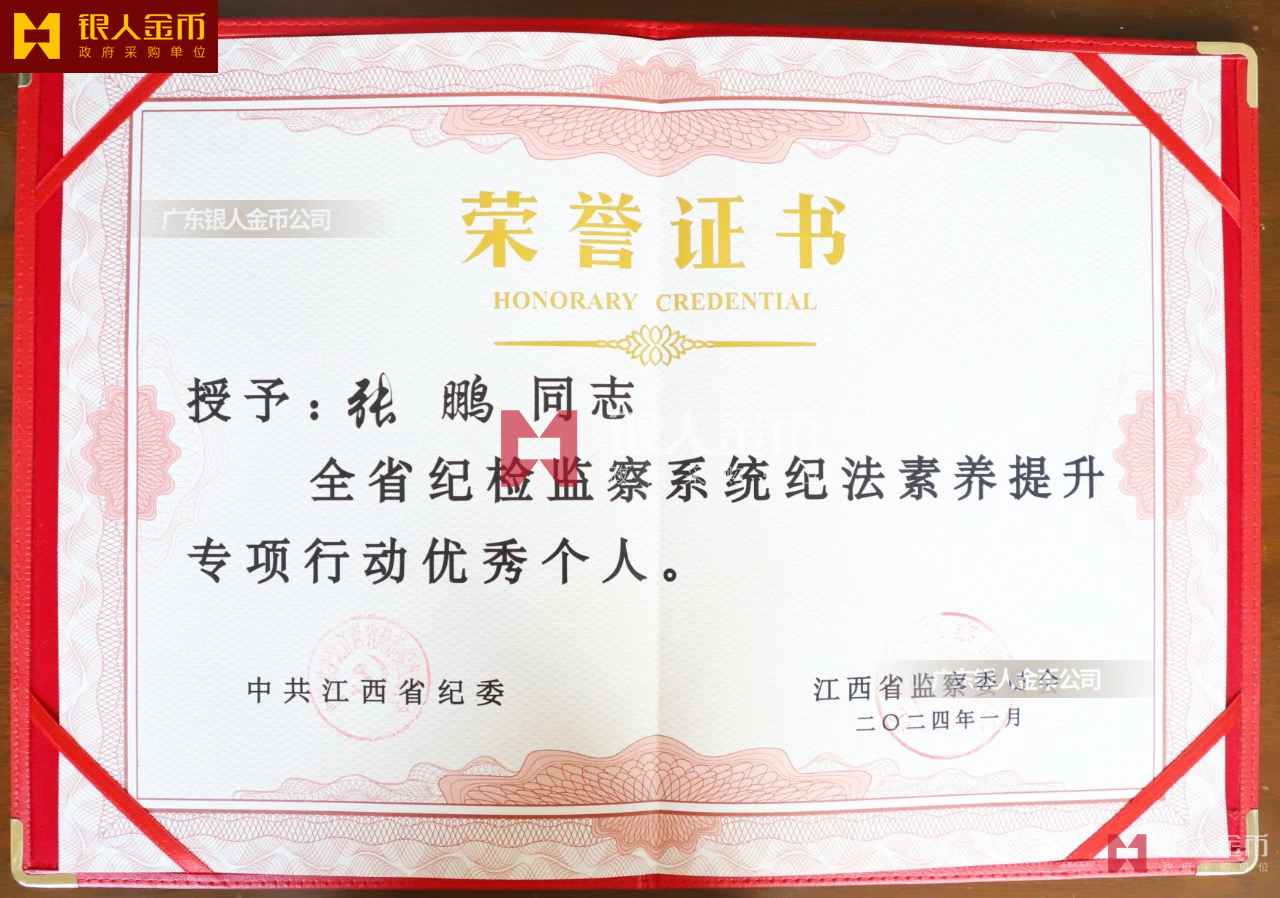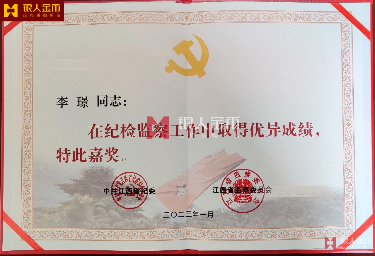 中共江西省紀委、江西省監察委委員會2023年度全省紀檢監察系統紀法素養提升專項行動優秀個人獎牌、證書