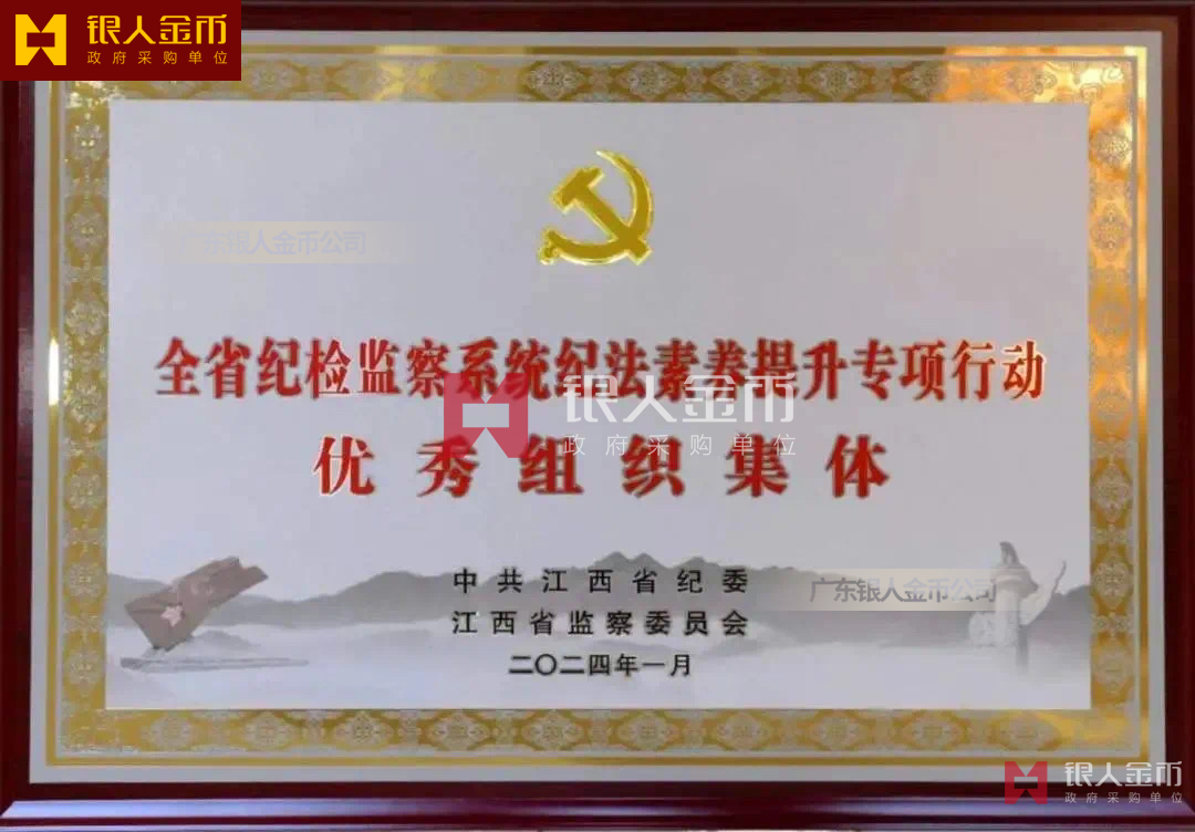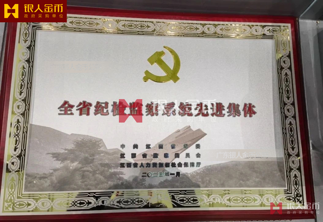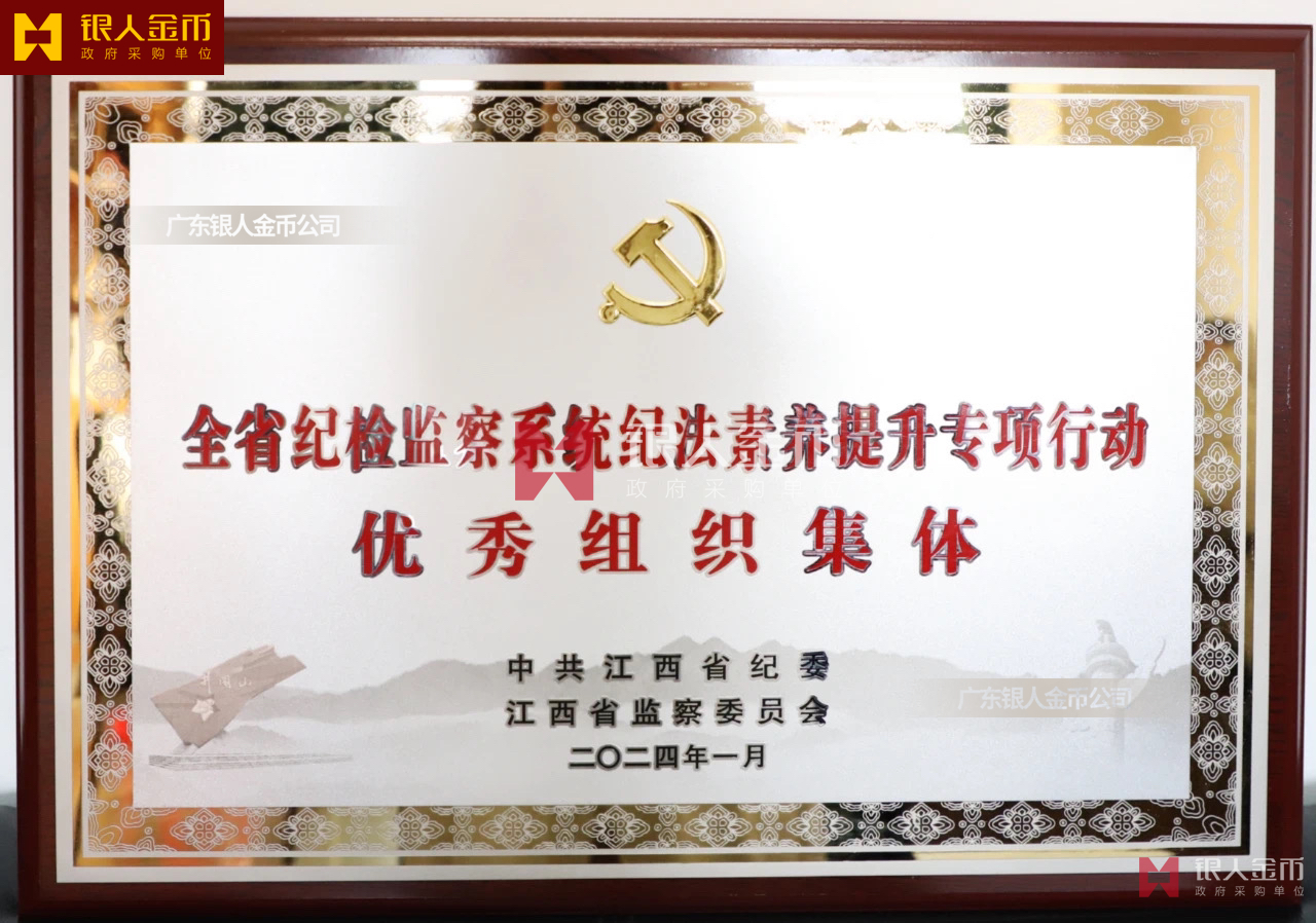 中共江西省紀委、江西省監察委委員會2023年度全省紀檢監察系統紀法素養提升專項行動優秀組織集體獎牌、證書