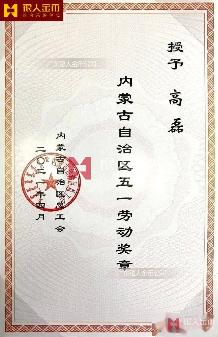 內蒙古自治區五一勞動獎章、證書和五一勞動獎狀、證書(圖)-【廣州紀念徽章生產制作廠家制造企業單位】