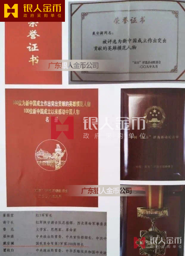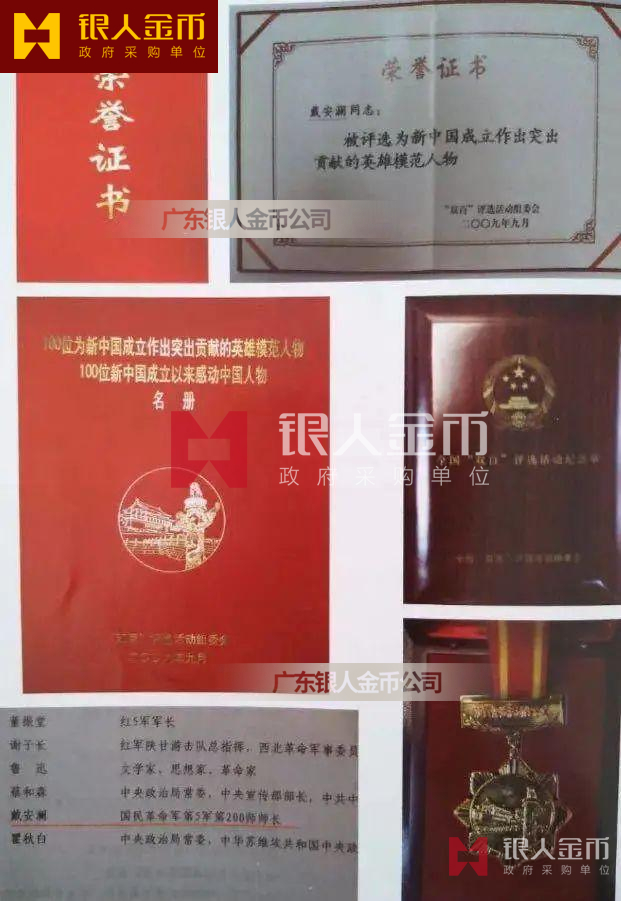 黨中央頒發的國家功勛章和紀念章及功臣獎章、國務院授予的國家功臣勛章和紀念章、中央軍委授予榮、獲的軍功章和勛功章與紀念獎章及紀念章包括榮譽獎章和榮譽勛章、原國防部國防科工委發放的勛功章和榮譽章和榮譽證章及紀念徽章、國家部委級表彰的高檔獎牌獎章勛章證章及榮譽紀念牌與榮譽紀念章、各地省委自治區直轄市表彰的獎章勛章與紀念證章、各地區行署州委市委獎勵的獎章獎牌和紀念獎牌與紀念胸章、各公檢法政法委政府單位獎勵表彰的紀念牌、退休紀念章、榮休紀念牌、包括各企事業單位記功記大功獎章、公務員一二三等功獎章。
