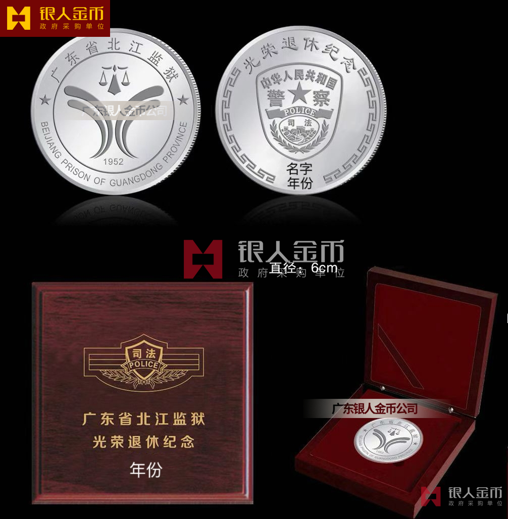 廣東省司法廳韶關市公安局干警廣東省北江監獄司法民警警察光榮退休紀念章退休離崗紀念幣從警紀念章紀念銀章銀質紀念章足銀紀念章純銀紀念章(圖)