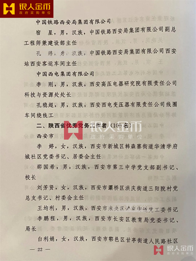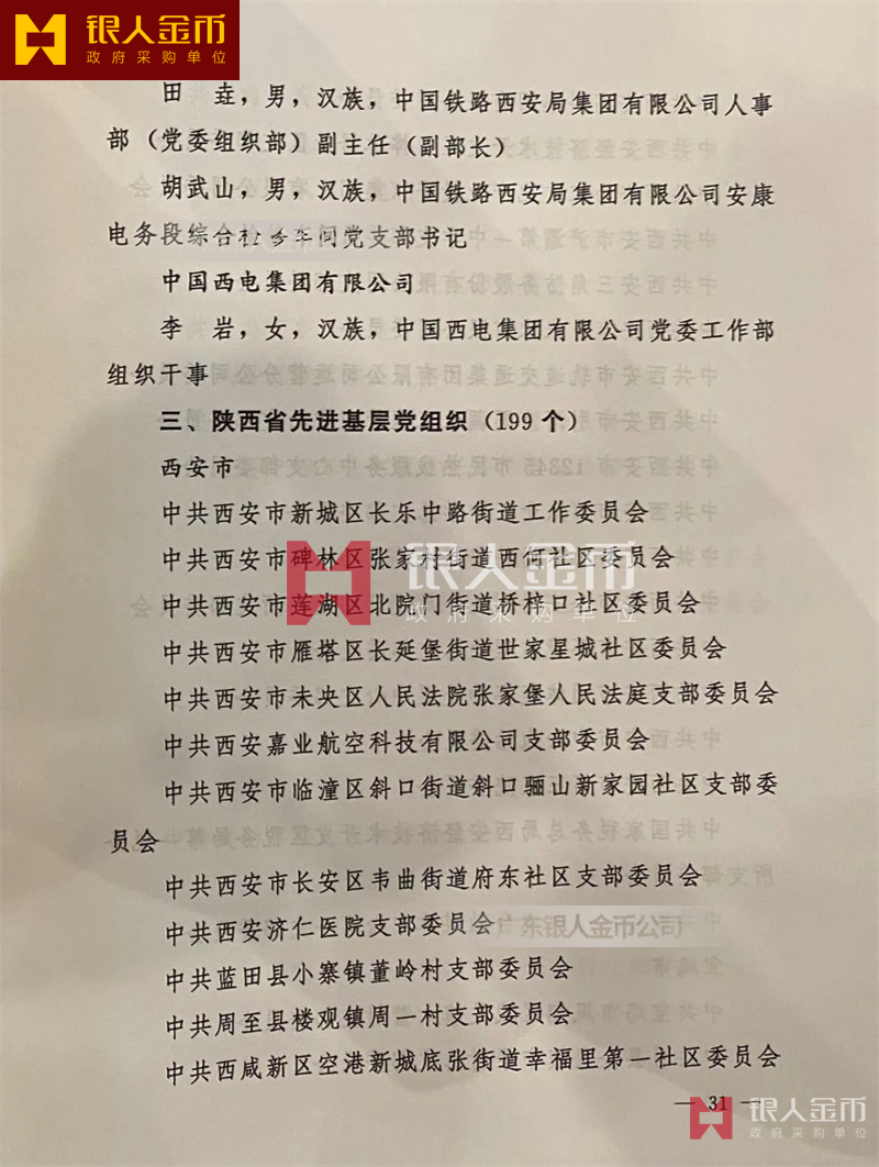 中共陜西省委組織部兩優一先優秀共產黨員、優秀黨務工作者和先進基層黨組織名單