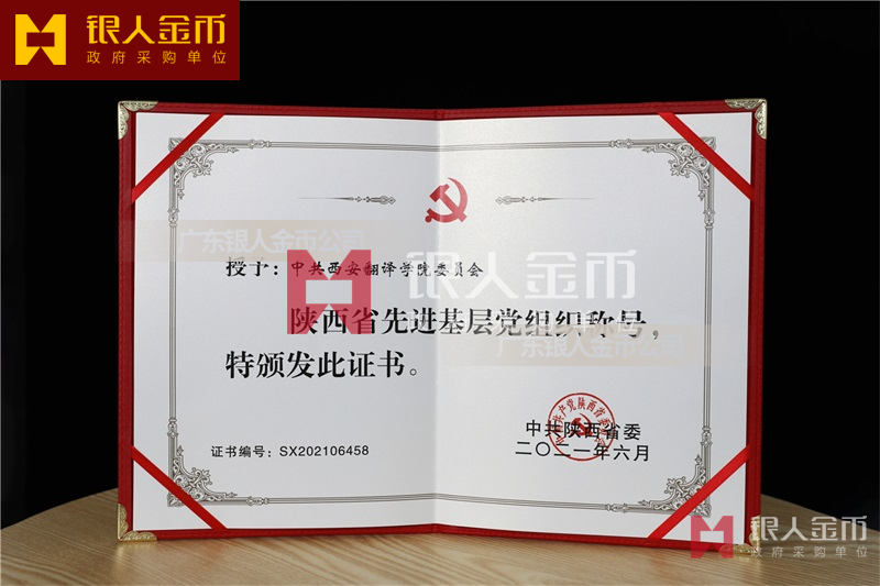 “兩優一先”優秀共產黨員獎章證書、優秀黨務工作者獎章證書、先進基層黨組織獎牌證書(定制標準)
