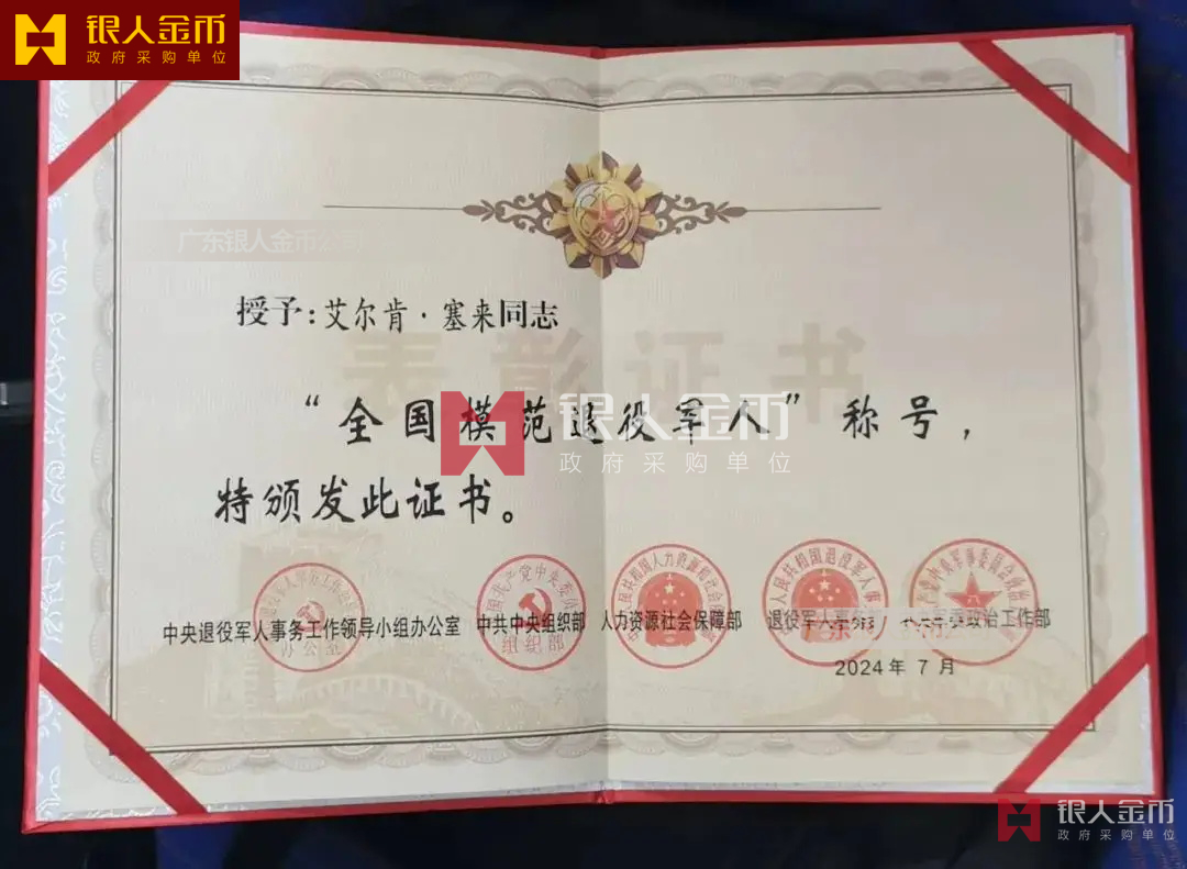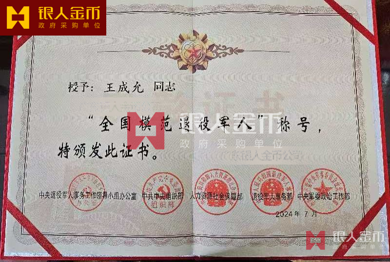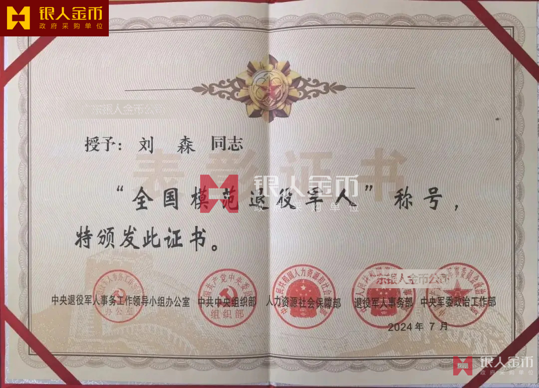 中央軍委政治部、退役軍人事務部、中組部、人社部、全國模范退役軍人”稱號獎章證書(圖)