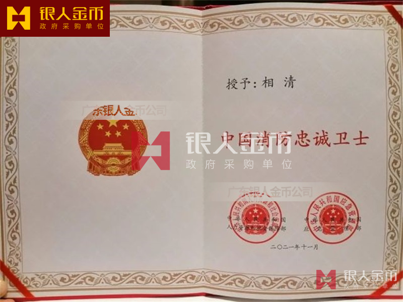 應急管理部中國消防忠誠衛士獎章與全國應急管理系統二級英雄模范獎章證書(圖)