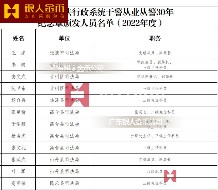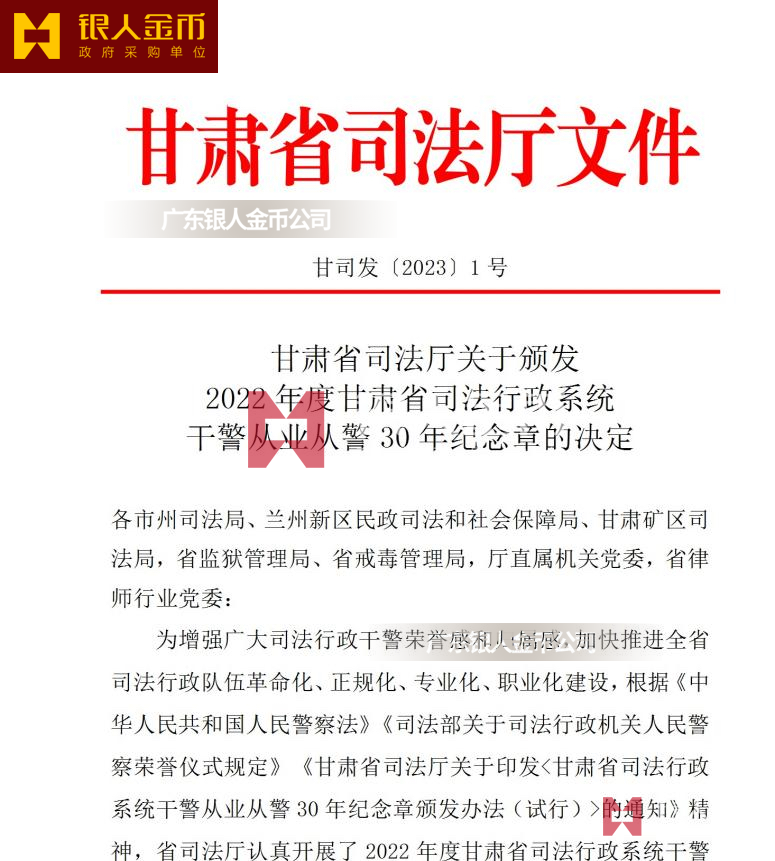 甘肅省司法廳公安民警、檢察院干警、法院法警、監獄警察干警民警從警三十年紀念章從警章光榮退休榮譽章(圖)
