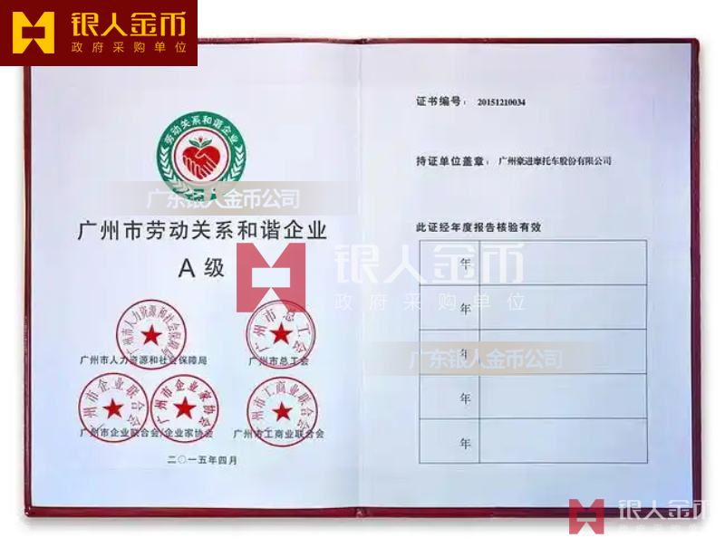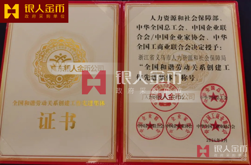 人社部全國和諧勞動關系創建工作先進集體獎牌證書牌匾銅牌(圖)