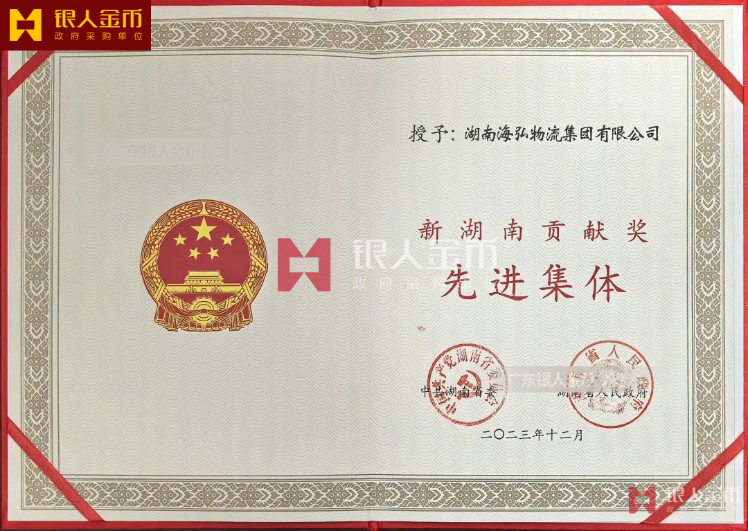 中共湖南省委、湖南省人民政府——新湖南貢獻獎先進集體證書(榮譽證書、獎勵證書)