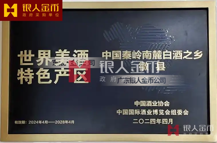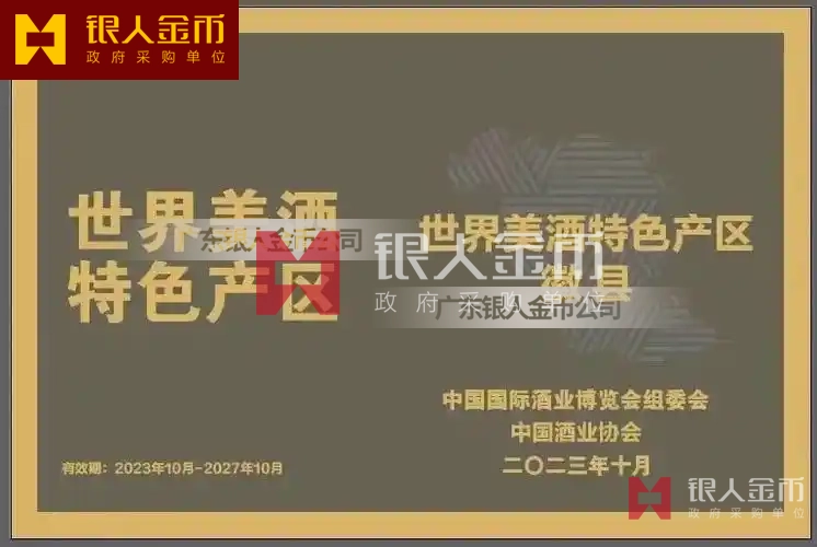 中國國際酒業博覽會“世界美酒魯雅香特色產區”稱號獎牌牌匾銅牌(圖)